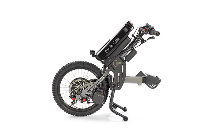 El handbike acoplable BATEC ELÉCTRICO 2 se caracteriza por su neumático de 18", fabricado exclusivamente para BATEC. Gracias a que es más ancho y ultra adherente, el renovado modelo es más compacto y con un tamaño ideal para su uso en zonas urbanas y rurales con total seguridad y comodidad en su conducción, tanto en desplazamientos cotidianos como en largos recorridos. Además, el BATEC ELÉCTRICO 2 incluye de serie dos pesos que mejoran la tracción y tiene una velocidad máxima hasta 25 km/h.